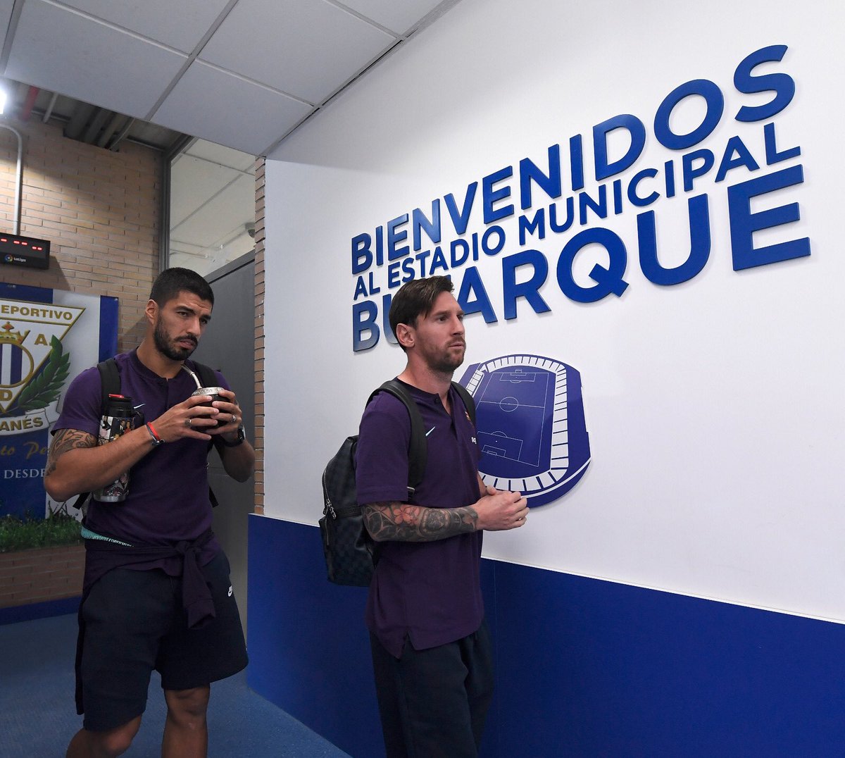 Лионель Месси и Луис Суарес прибыли со своей командой на стадион.