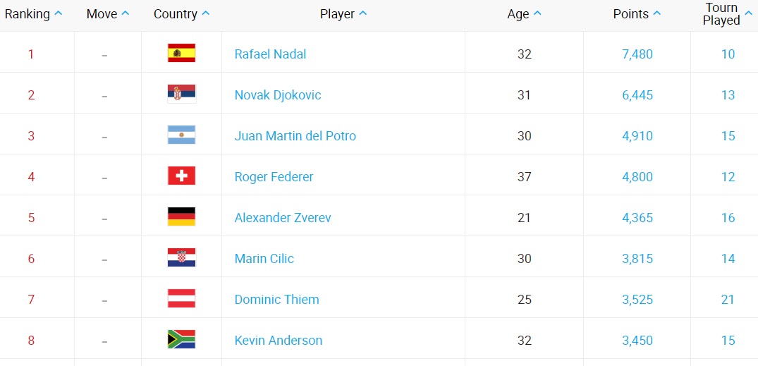Рейтинг ATP. Надаль сохранил лидерство, падение украинцев продолжается