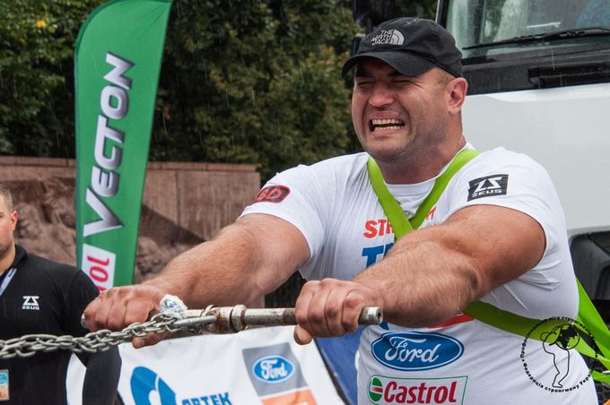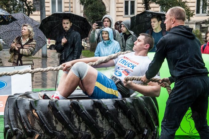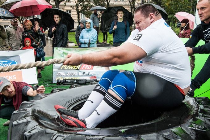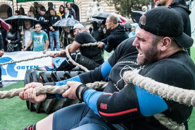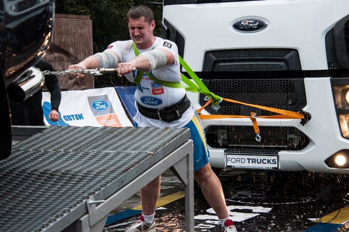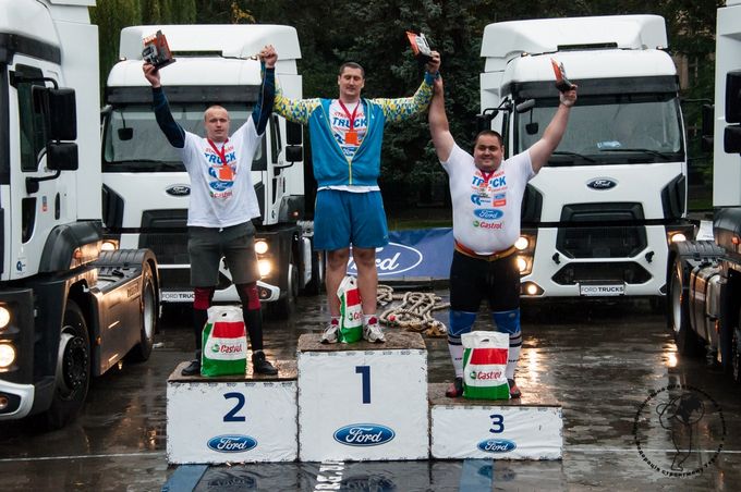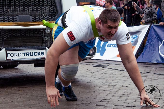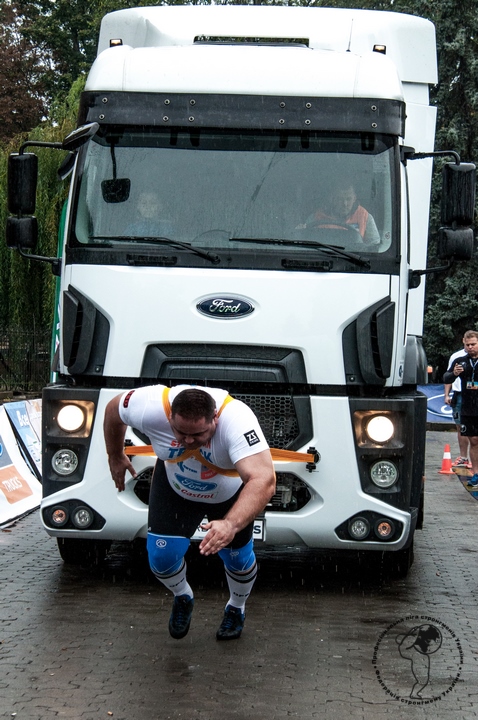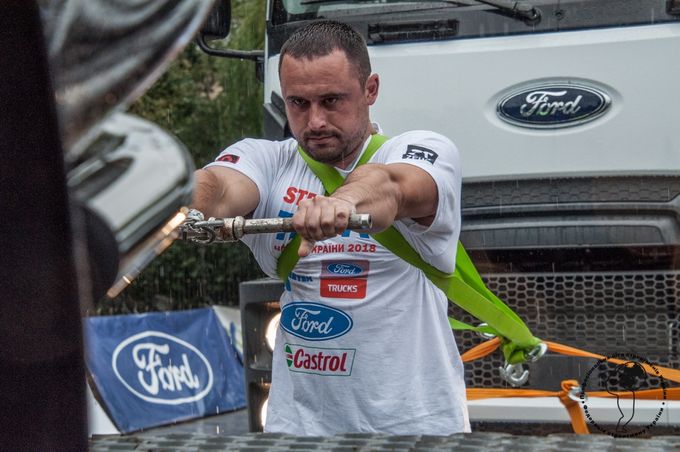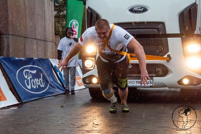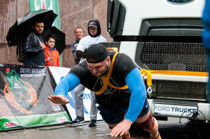 Холодний осінній дощ на пару з вітром ускладнили роботу атлетам. «Трак-пул» 8-тонної вантажівки на 20 метрів по слизькій поверхні – заняття надскладне. За жеребкуванням, першим тягнув один із фаворитів – Олександр Лашин, який одразу показав доволі високий результат для таких погодних умов – 30,1 секунди.
