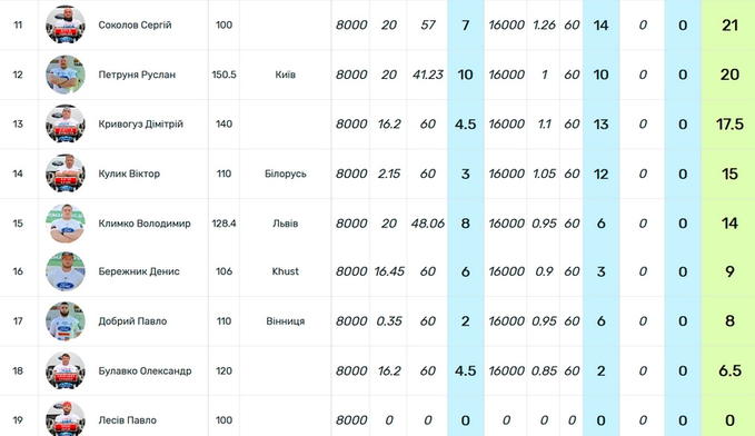 А переможцем турніру став той, хто сенсаційно захопив лідерство на старті змагання і не віддав цю позицію аж до фінішу! Колишній метальник диску Юрій Симоненко протримав авто із четвертим результатом, чого було більш, як достатньо для загального тріумфу: перевага у підсумковій таблиці склала аж 7 очок! Такий яскравий виступ Симоненка дає підстави припускати, що наступного сезону когорта претендентів на «топ-10» збільшиться щонайменше на одного атлета.