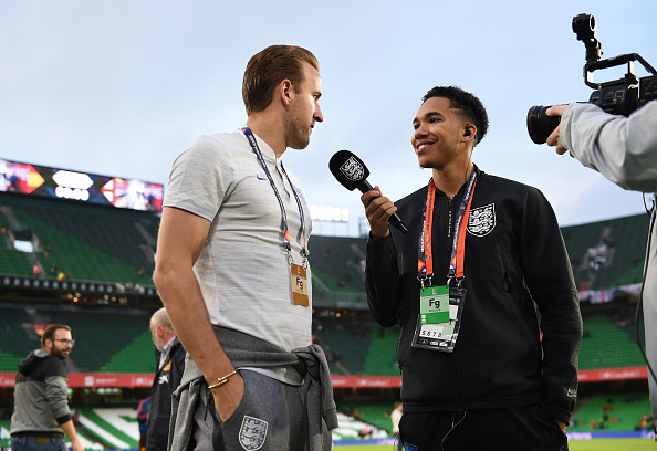 Гарри Кейн дает предматчевое интервью.