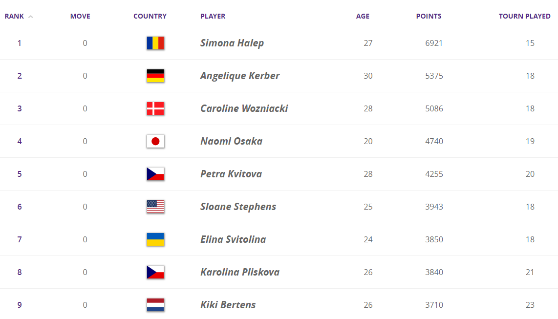 Неудача Элины Свитолиной в четвертьфинале Гонконга отбросила ее на одну позицию и теперь она шестая. Место первой ракетки Украины в топ-5 рейтинга заняла Каролина Плишкова. Больше изменений в первой десятке нет.