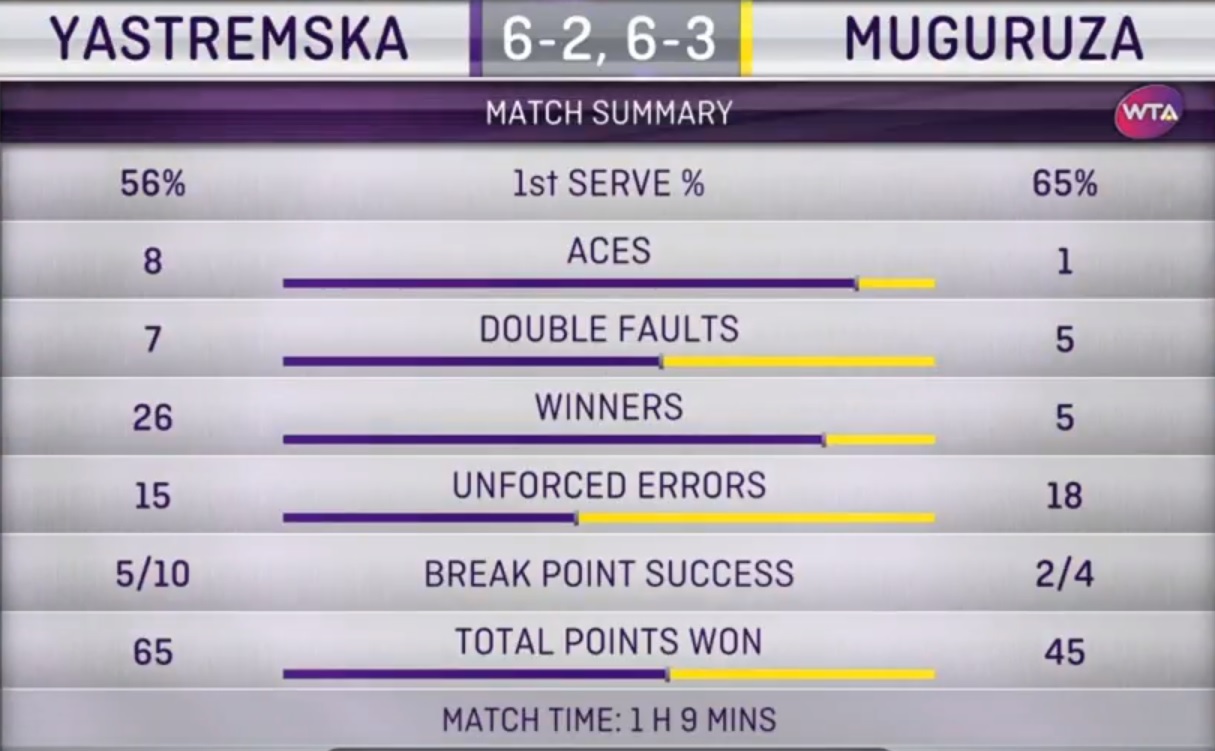 Даяна Ястремская (Украина) – Гарбинье Мугуруса (Испания) – 6:2, 6:3