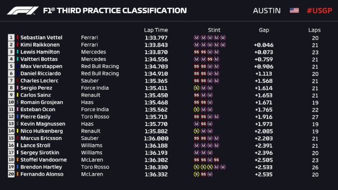 Лучшее время показали пилоты Феррари Себастьян Феттель и Кими Райкконен, тогда как представители Мерседеса большую часть сессии испытывали определенные проблемы.