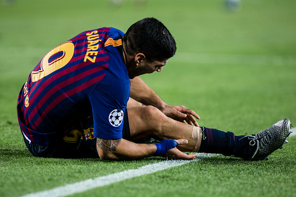 39 мин. Пауза в игре, Суарес остался сидеть на газоне после столкновения с соперником, но, похоже, с ним все будет в порядке.