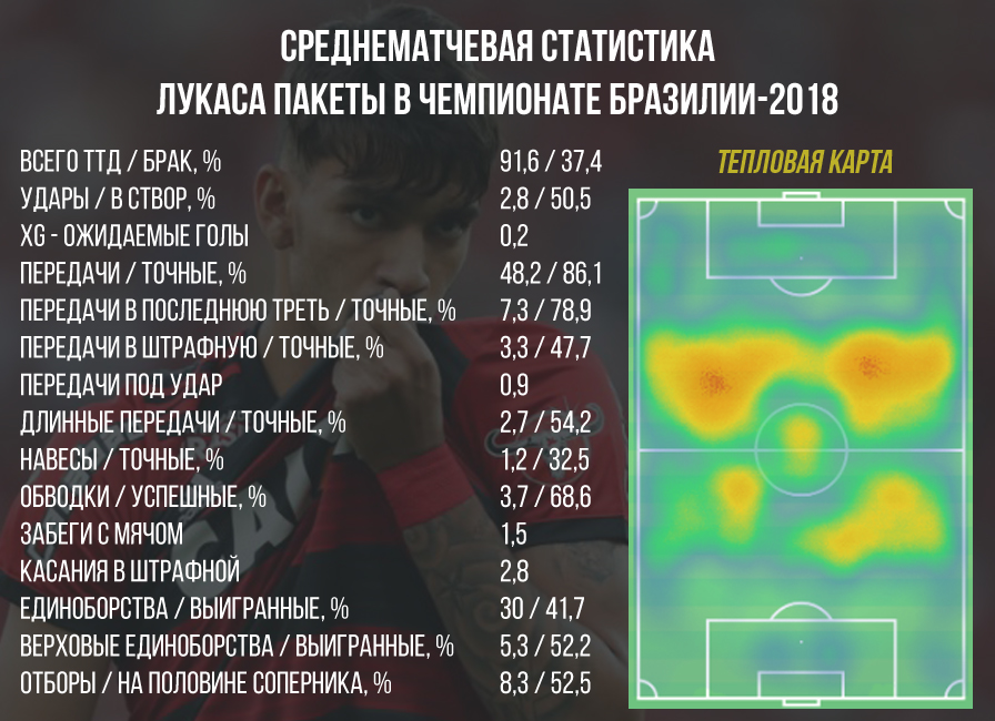 Техника и понимание игры - главные козыри Пакеты. Не обладая феноменальной скоростью, этот футболист старается брать другим, что у него прекрасно получается. Отобрать мяч у Пакеты без нарушения правил - та еще задачка. В текущем розыгрыше чемпионата Бразилии в среднем за матч Лукас собирает на себе 2,6 нарушения правил. Что правда, Пакета и сам фолит довольно немало - 1,7 раз за игру, однако его нарушения, как правило, носят характер тактических - тех, что призваны в первую очередь уберечь свою команду от острых контрвыпадов соперника, позволив перегруппироваться в обороне.