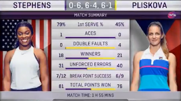 Слоан Стивенс (США) – Каролина Плишкова (Чехия) – 0:6, 6:4, 6:1