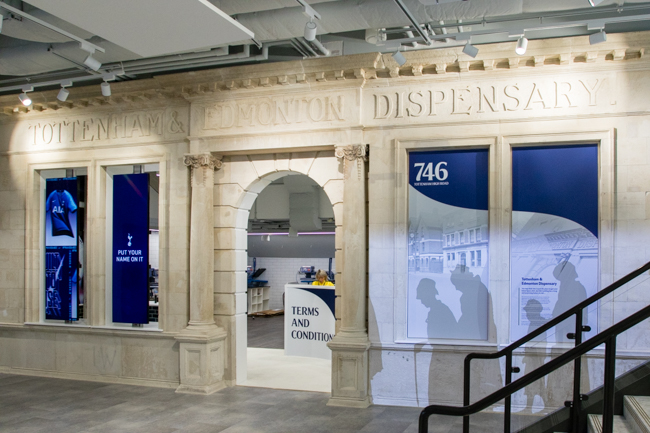 Секция для нанесения своего имени и номера на футболки прячется за стеной с вывеской Tottenham & Edmonton Dispensary. Клуб перенес сюда оригинальный фасад поликлиники, которая десятилетиями соседствовала со стадионом – на ступенях даже продавали клубные шарфы и предматчевые программки.