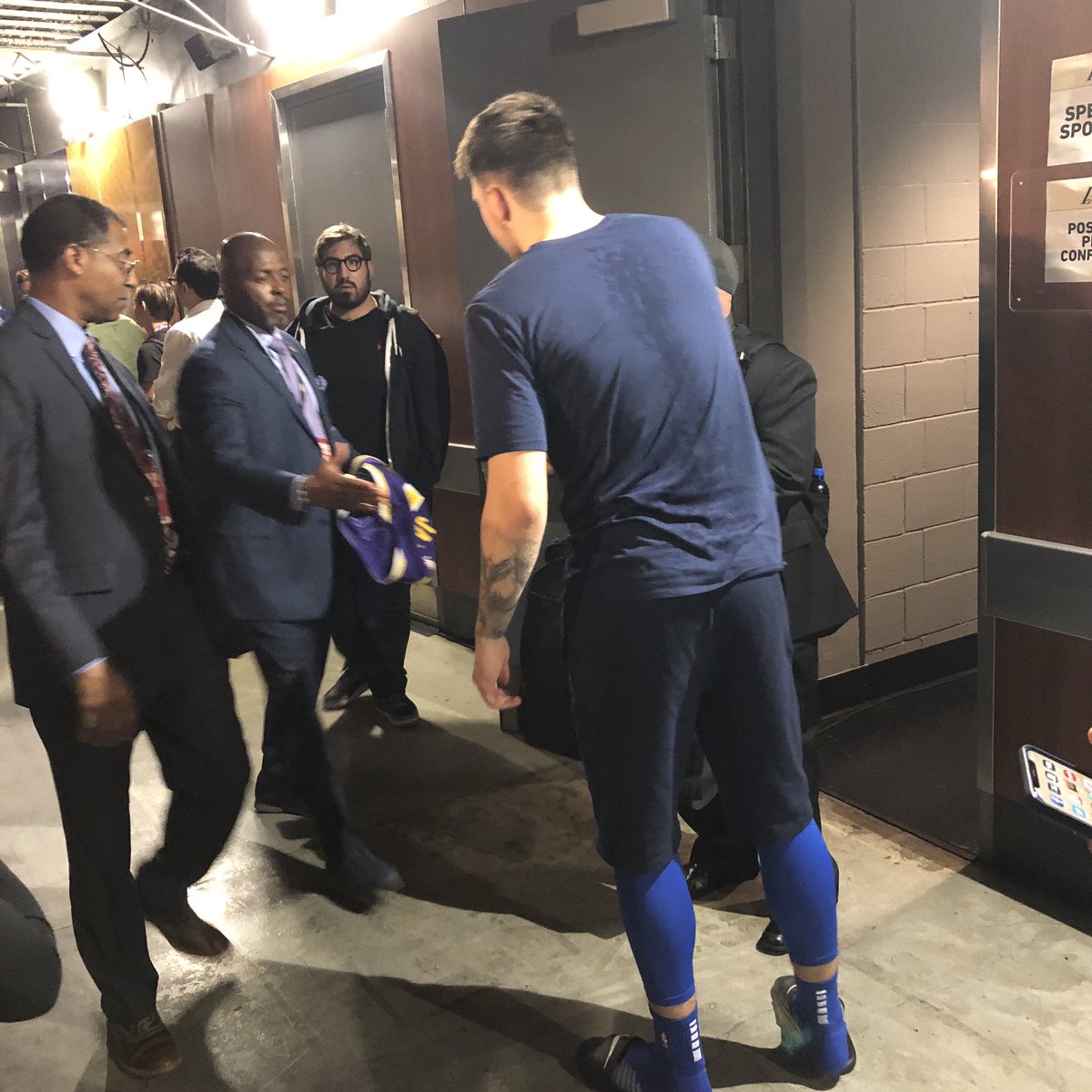 Во время игры Дончич попросил у Джеймса подарить ему футболку с автографом. После матча Дончич пошел к раздевалке «Лейкерс» и ждал, пока представители Леброна отдадут ему обещанный презент.