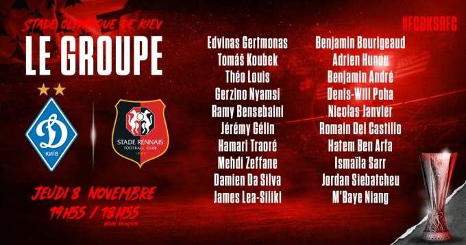 Футболисты «Ренна» сегодня отправились в Киев, где в четверг состоится матч 4-го тура группового этапа Лиги Европы против «Динамо».
