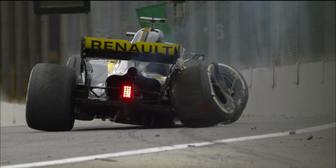 Отметим жесткий удар в барьеры болида Нико Хюлькенберга.