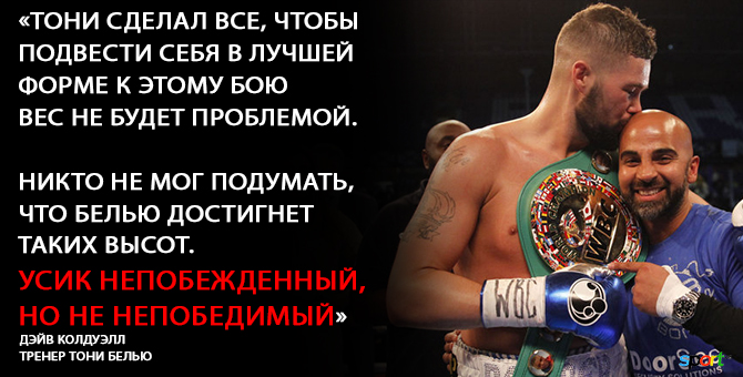 «Усик – Белью тяжелый бой. Люди и не видят в этом поединке большого вызова, но я думаю, что бой против Тони будет тяжелее, чем против Мурата Гассиева».