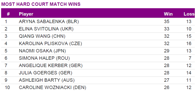 Свитолина стала 2-й по количеству выигранных матчей на харде в сезоне