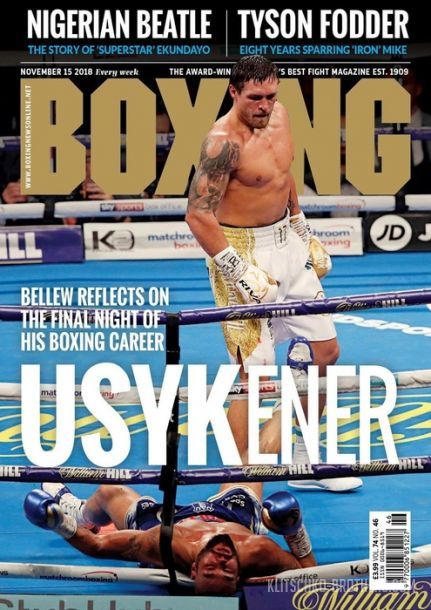 Абсолютный чемпион мира в тяжелом весе украинец Александр Усик после победы над обладателем титула «почетного» чемпиона мира по версии WBC Тони Беллью попал на обложку журнала Boxing News.