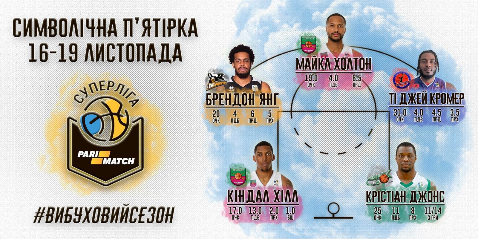 Кроме того ни одного матча не сыграли БК «Днепр» и МБК «Николаев», которые в своем составе имеют исключительно украинских игроков. Поэтому голосования тренеров всех команд элитного дивизиона и представителя титульного спонсора турнира определило в символическую сборную тура 5 легионеров.