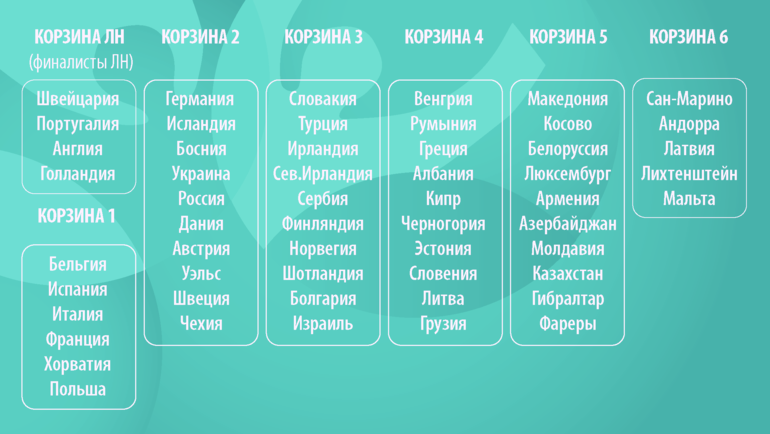 Впервые в истории проведения чемпионатов Европы «корзины» при жеребьевке отбора к первенству континента определились на основании выступления национальных команд в групповом турнире Лиги наций. Данное новшество еще подлежит изучению на прочность. Да и на «вшивость» тоже. Посему мы не будем сейчас лишний раз говорить, хорошо это или плохо. Просто констатируем, что итоговое распределение сборных по «сусекам» оказалось не без сюрпризов.