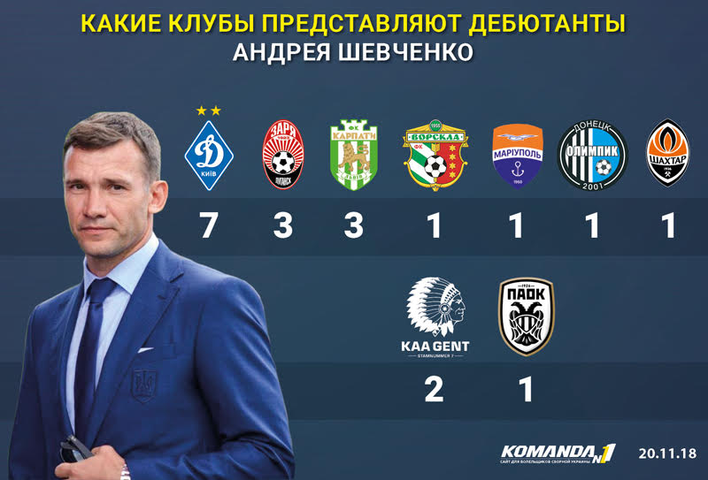 Главный тренер сборной Украины Андрей Шевченко за время работы с национальной командой предоставил возможность дебютировать сразу 20 футболистам.