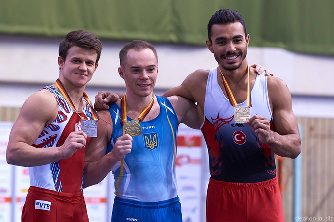 Игорь Радивилов выиграл золото на опорном прыжке, Олег Верняев стал первым на брусьях, а Диана Варинская стала третьей в упражнениях на бревне.