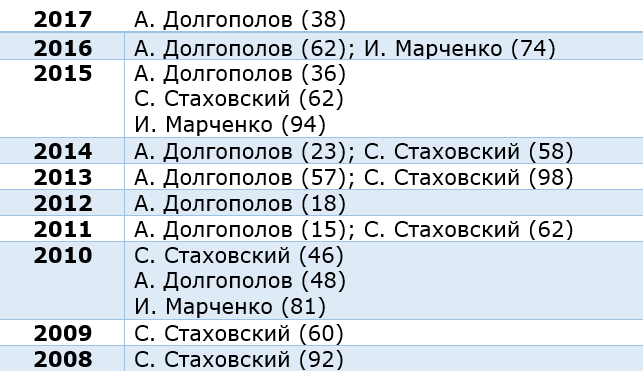 Впервые с 2007-го украинцы не попали в топ-100 рейтинга по итогам года