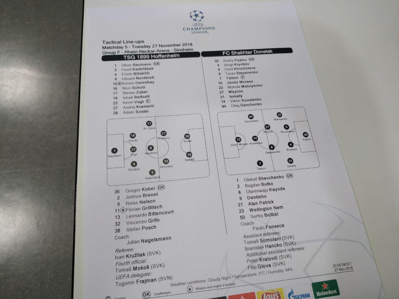 Во вторник, 27-го ноября, состоялся поединок группового раунда Лиги чемпионов, в котором «Хоффенхайм» принимал донецкий «Шахтер». Матч прошел в Зингсхайме на стадионе «Райн-Некар-Арена».