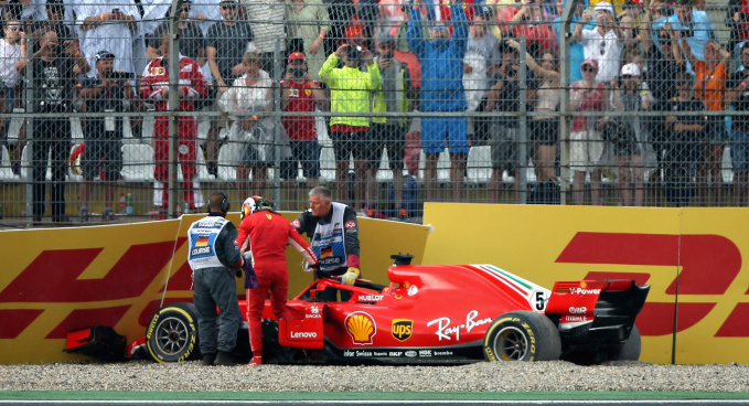 4. Гран-при Германии. Самый болезненный момент сезона. На своем домашнем гран-при Феттель лидировал, но на мокрой трассе допустил ошибку и вылетел в гравий. Очков не набрал, а Хэмилтон выиграл этап.