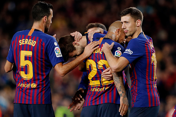 Клеман Лангле (18), Жорди Альба (68) - Виктор Руис (11), Альваро Гонсалес (26), Пабло Форнальс (89)