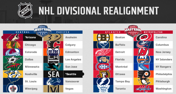 Сиэттл пополнит Западную конференцию НХЛ и будет соперничать с командами Тихоокеанского дивизиона. При этом «Аризону Койотис» переведут в Центральный дивизион.