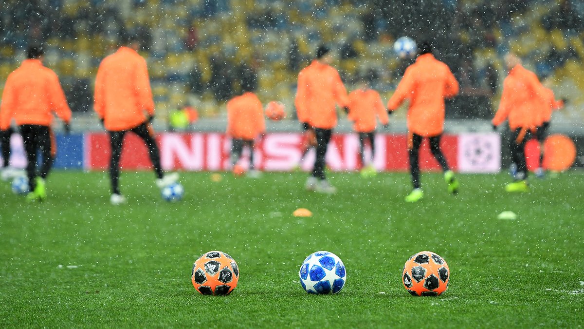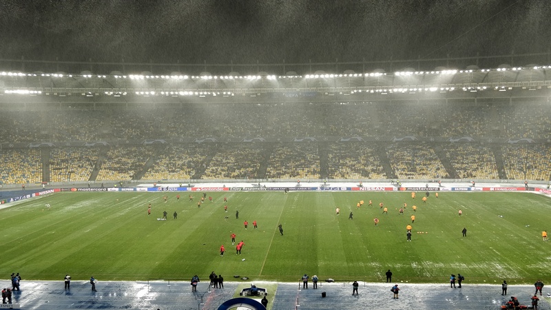 В день матча Киев обильно посыпает снегом.