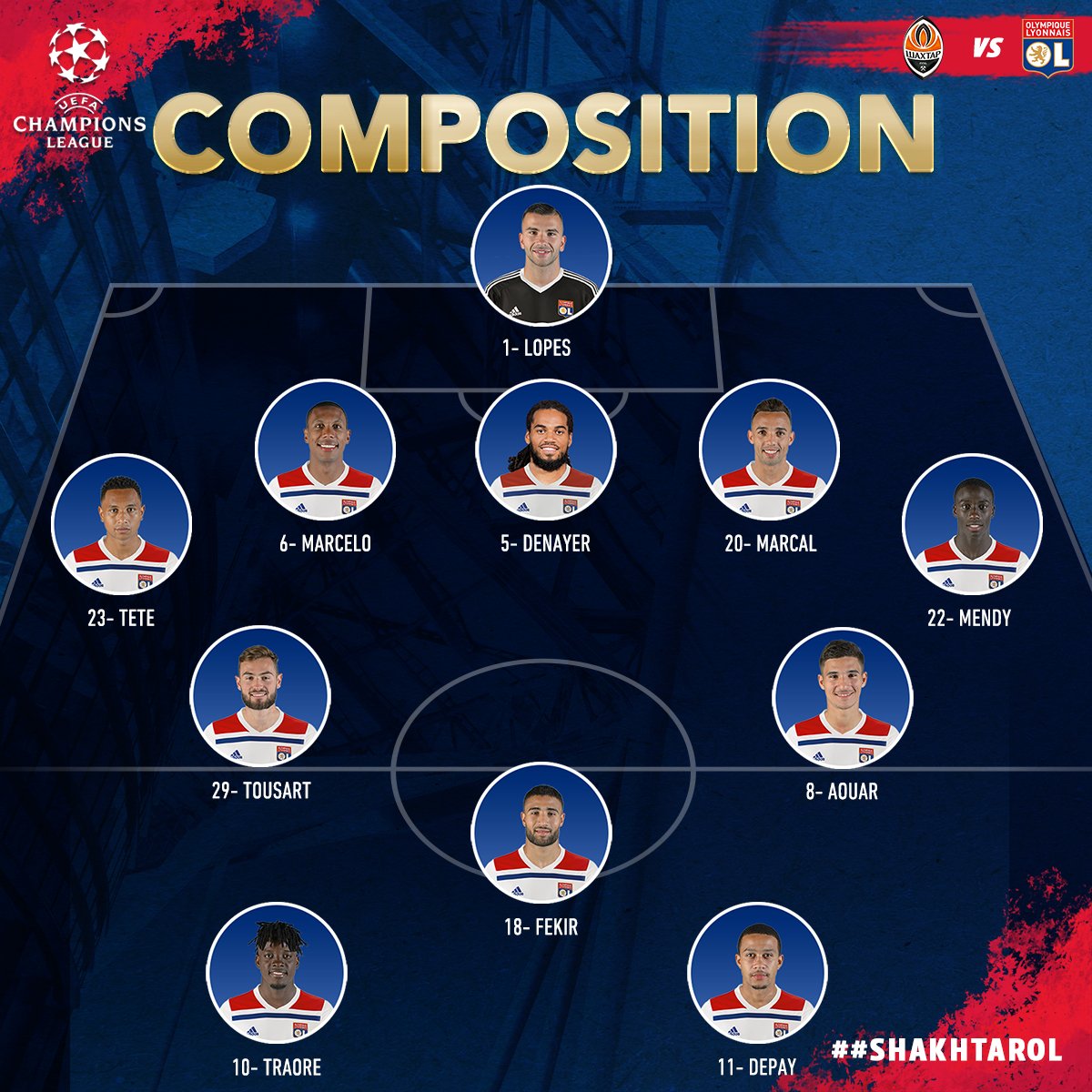 «Лион»: Антони Лопеш, Жезон Денайер, Марсело, Кенни Тете, Марсал, Ферлан Менди, Уссем Ауар, Бертран Траоре, Люка Тузар, Мемфис Депай, Набиль Фекир.