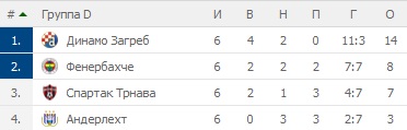 Группа D. Динамо Загреб и Фенербахче вышли в плей-офф