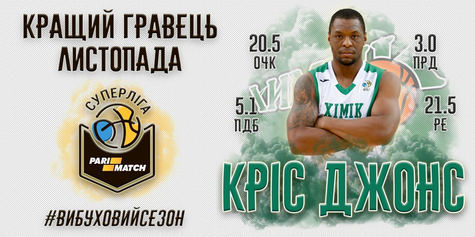 Американский форвард «Химика» Кристиан Джонс получил звание лучшего игрока месяца в украинской Суперлиге.