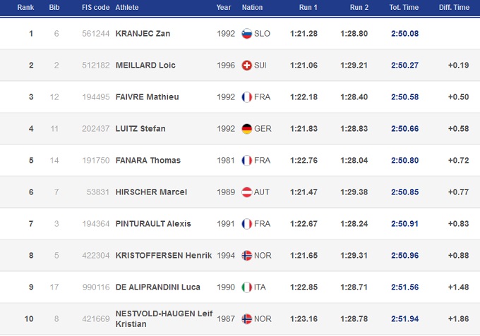 Жан Краньец выиграл гигантский слалом на этапе Кубка мира в Заальбах-Хинтерглемме. Для 26-летнего словенца это первая в карьере победа на Кубке мира. Компанию на подиуме ему составили Лоик Мейяр и Матье Фавр.