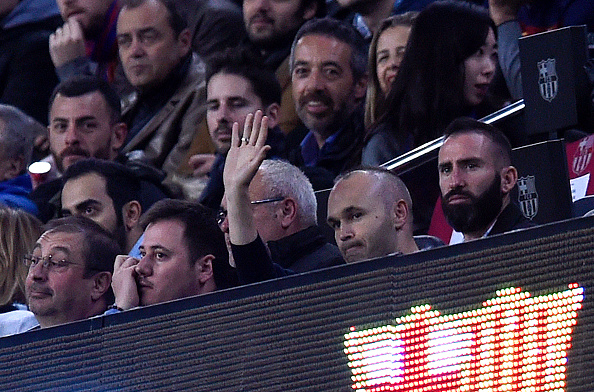 37 мин. Бурно трибуны приветствуют наблюдающего за встречей Иниесту, которого показали на экране.