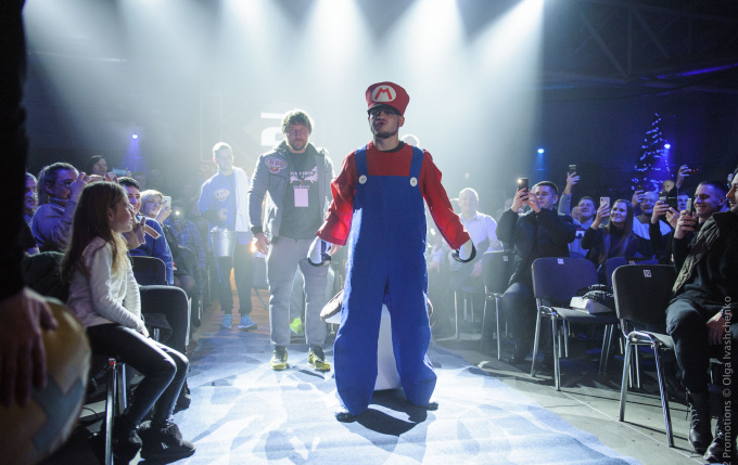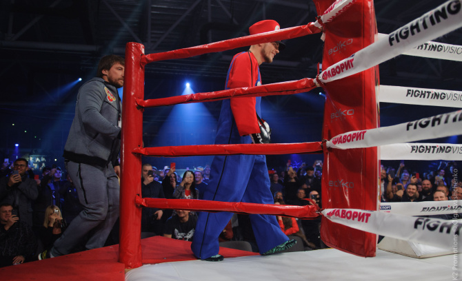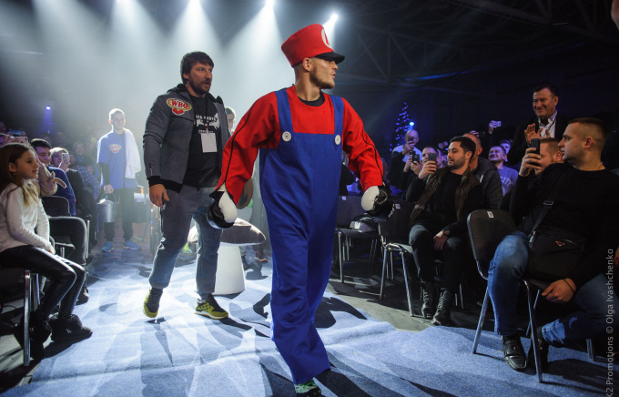 Беринчик - Кристобаль. Выход в образе Супер Марио и чемпионский пояс