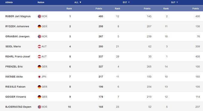 После 3-недельной паузы в Кубке мира по двоеборью Ярл Магнус Риибер одержал четвертую победу подряд, выиграл первый личный старт в Рамзау. Однако воскресный старт принес лидеру Кубка мира диаметрально противоположные эмоции. Перед его прыжком лыжня на горе разгона трамплина в Рамзау буквально посыпалась: он нее откололись несколько кусков льда. Организаторы вроде бы очистили гору разгона, однако за это, достаточно долгое время Риибер перегорел и свой прыжок завалил.