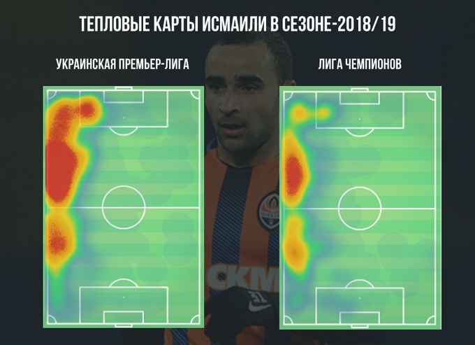 Если взглянуть на зону действий Исмаили, то многие могут удивиться - этот защитник по амплуа очень часто оказывается непосредственно в штрафной соперника. В матчах украинской Премьер-лиги подобная ситуация стала уже привычной, но и в Лиге чемпионов тенденция соблюдается.