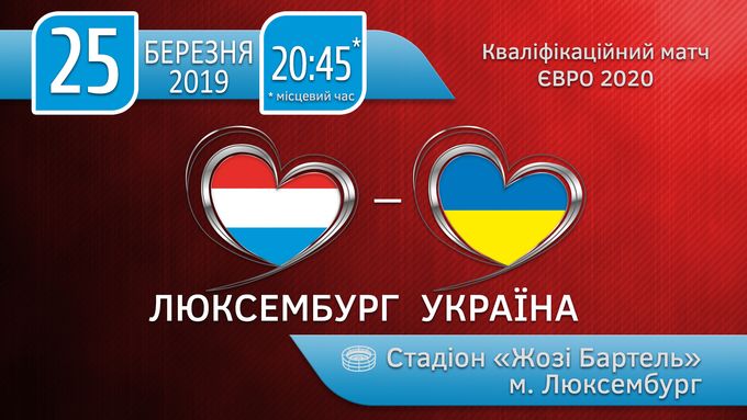 Після першого матчу відбору до Евро-2020 з командою Португалії, який відбудеться 22 березня поточного року, національна збірна команда України вирушить до Люксембургу, де 25 березня о 21:45 місцевий час на стадіоні «Жозі Бартель» проведе другий виїзний матч кваліфікації чемпіонату Європи зі збірною Люксембургу.
