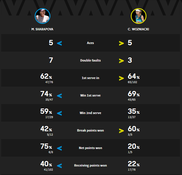 Каролин Возняцки (Дания) – Мария Шарапова (Россия) – 4:6, 6:4, 3:6