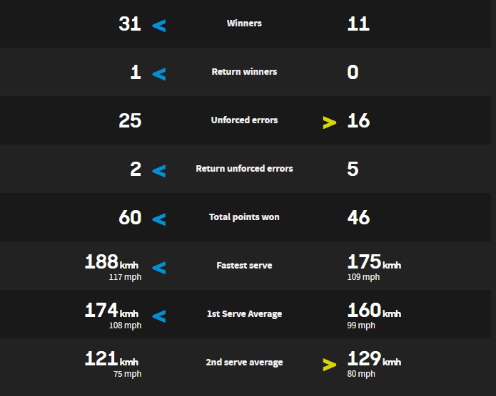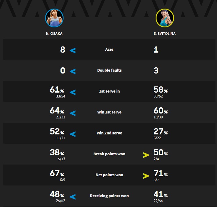 Элина Свитолина – Наоми Осака. Статистика матча