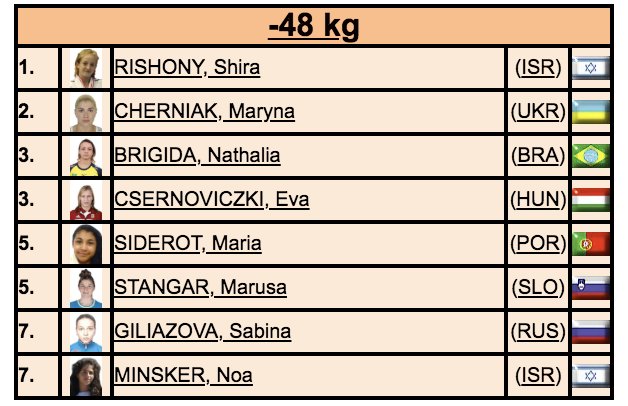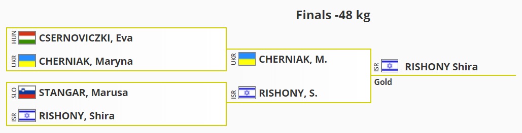 На пути в финал украинка одолела Дарью Пичкалеву из России, Ноа Минскер из Израиля и Еву Черновицки из Венгрии. Отметим, что Дарья Билодид, которая является чемпионкой мира в данной весовой категории, в соревнованиях не участвовала.