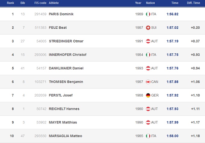 Доминик Парис в напряженной борьбе со швейцарцем Беатом Фойцем выиграл скоростной спуск в Китцбюэле на легендарной трассе «Штрайф».