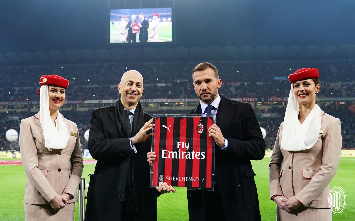Перед игрой Андрею Шевченко вручили именную футболку Милана:
