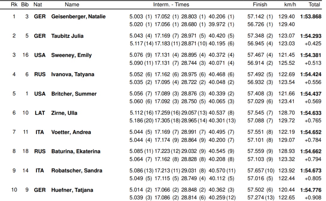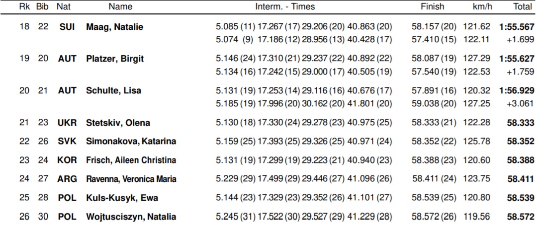 У женщин уже вторую победу одержала Натали Гайзенбергер. Украинка Елена Стецкив показала 21-й результат.
