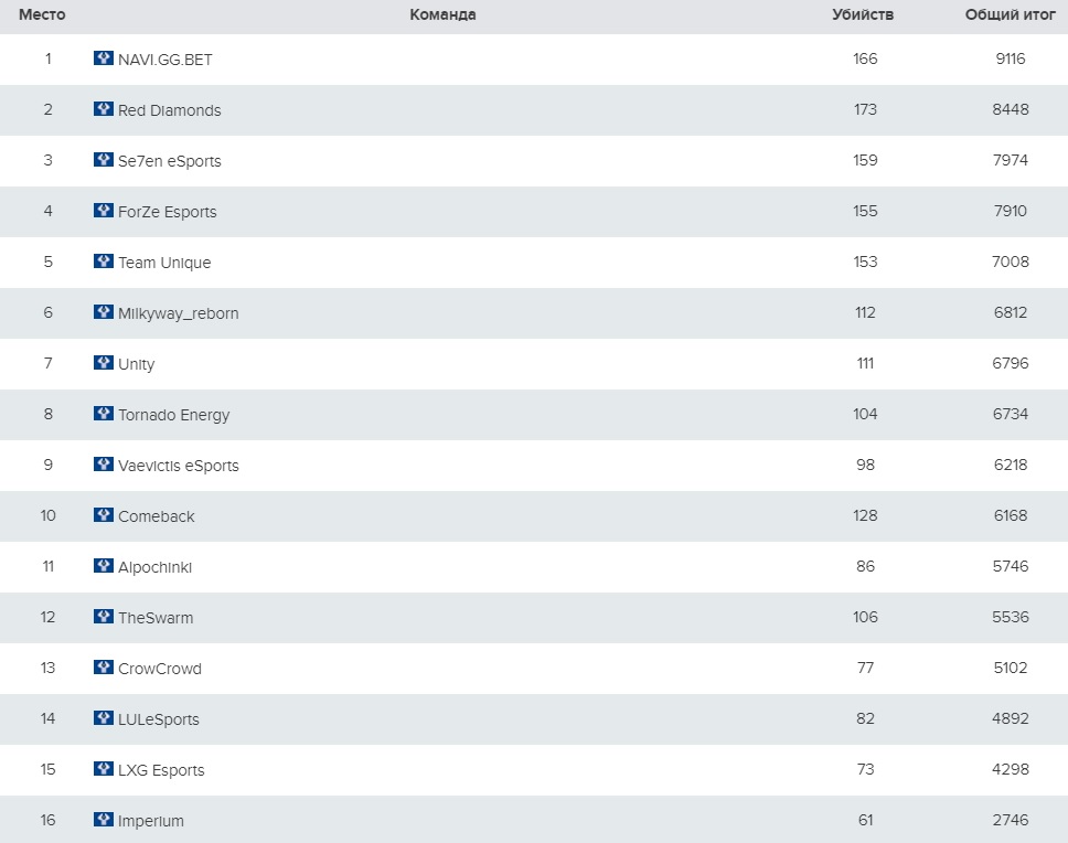 Несмотря на то, что в борьбу вступили такие соперники, как zz Team Unique, zz Se7en eSports, zz ForZe Esports и другие, ru NAVI с первого же дня лиги дали понять, что нацелены исключительно на победу в данном состязании. Наши парни заняли первую строчку в общем рейтинге на старте и не позволили ни одному противнику потеснить их с пьедестала.