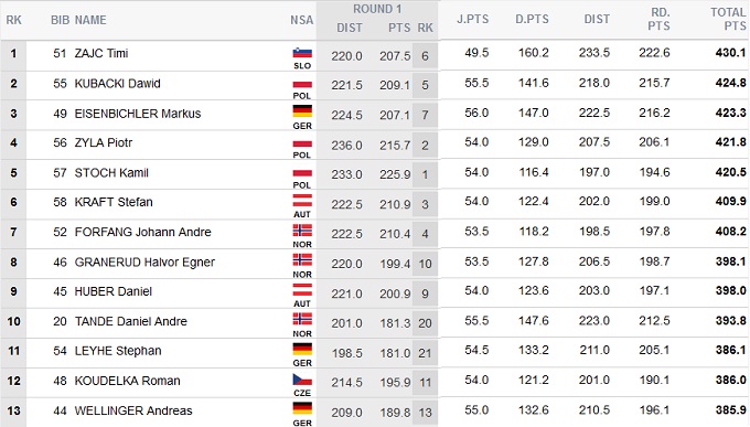 Первый в сезоне старт на гигантском трамплине завершился победой 18-летнего словенца Тими Зайца. Для него это дебютная победа в Кубке мира.