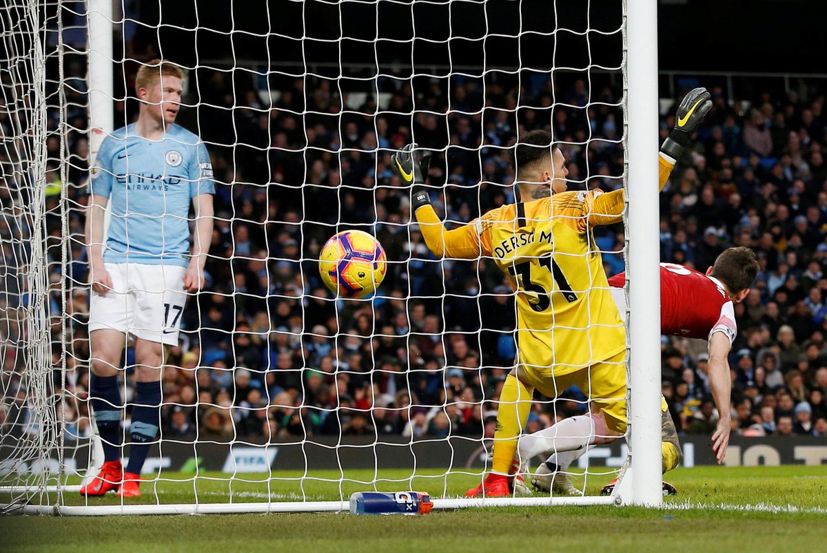 35 мин. Ляказетт сделал разрезную передачу на ход Обамеянгу, но Эдерсон вовремя выбежал за пределы штрафной и выбил мяч.