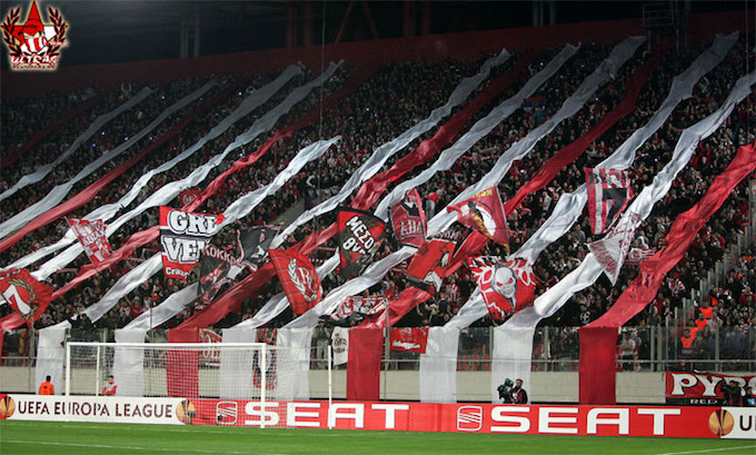 Фаны в Греции, как и в Турции, очень-очень горячие. То, как болеют на стадионе «Георгиос Караискакис», нужно видеть вживую – это сродни искусству. За два часа до начала матча на стадионе уже яблоку негде упасть – болельщики готовят себя к матчу песнями и кричалками, чтобы к выходу команд на разминку стадион напоминал раскаленный кратер вулкана, а у игроков гостей дрожали коленки.