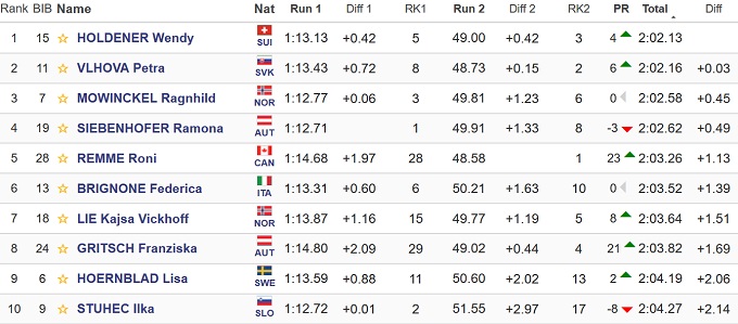 В напряженной борьбе действующая чемпионка в этой дисциплине Венди Холденер сумела опередить Петру Влхову. Бронза досталась Рагнхильд Мовинкель.