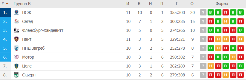 «Мотор» после 10-ти сыгранных матчей занимает 6-место в турнирной таблице и сохраняет шансы на выход в следующий этап. «Фленсбург» идет третьим, имея в активе 50 процентов набранных очков.