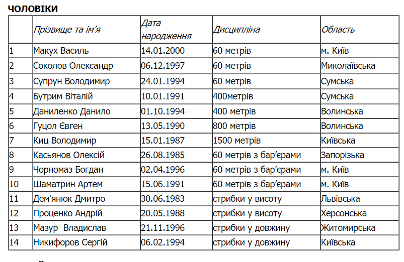 Члени Виконкому ФЛАУ затвердили склад команди для участі у чемпіонаті Європи з легкої атлетики у приміщенні, який 1-3 березня 2019 року відбудеться у Глазго.